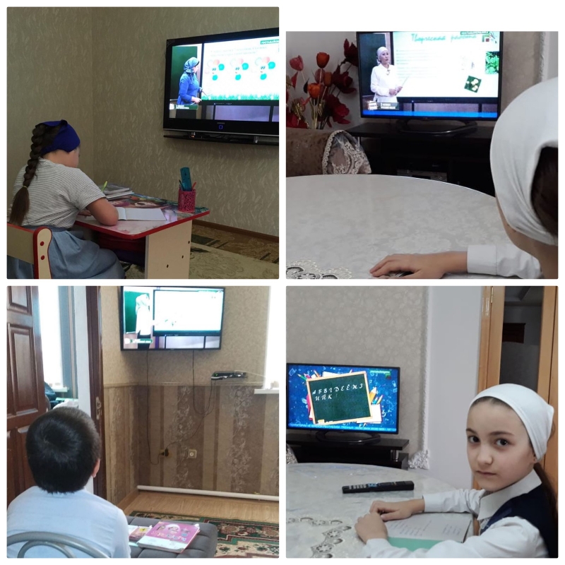 Учащиеся МБОУ "СОШ №1 им.З.С.Абдулаева с.Катар-Юрт" за просмотром уроков проекта "Телешкола".
