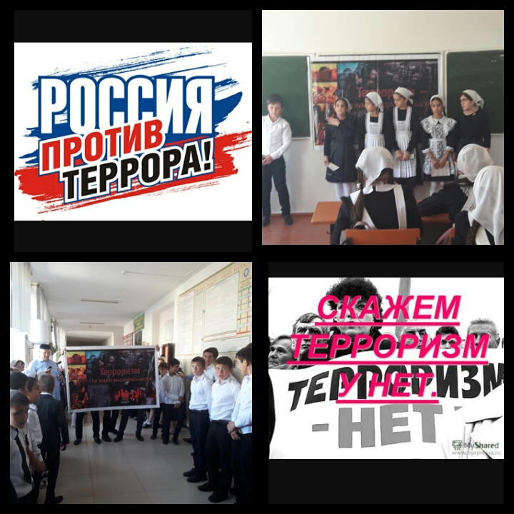 04.09.2017День солидарности в борьбе с терроризмом – одна из памятных дат в России, которая отмечается ежегодно 3 сентября. Так в целях исполнения Комплексного плана информационного противостояния экстремизму и терроризму с 2 по 5 сентября 2017 года в нашей школе прошел ряд мероприятий : классные часы, конкурс рисунков , общешкольная линейка.
