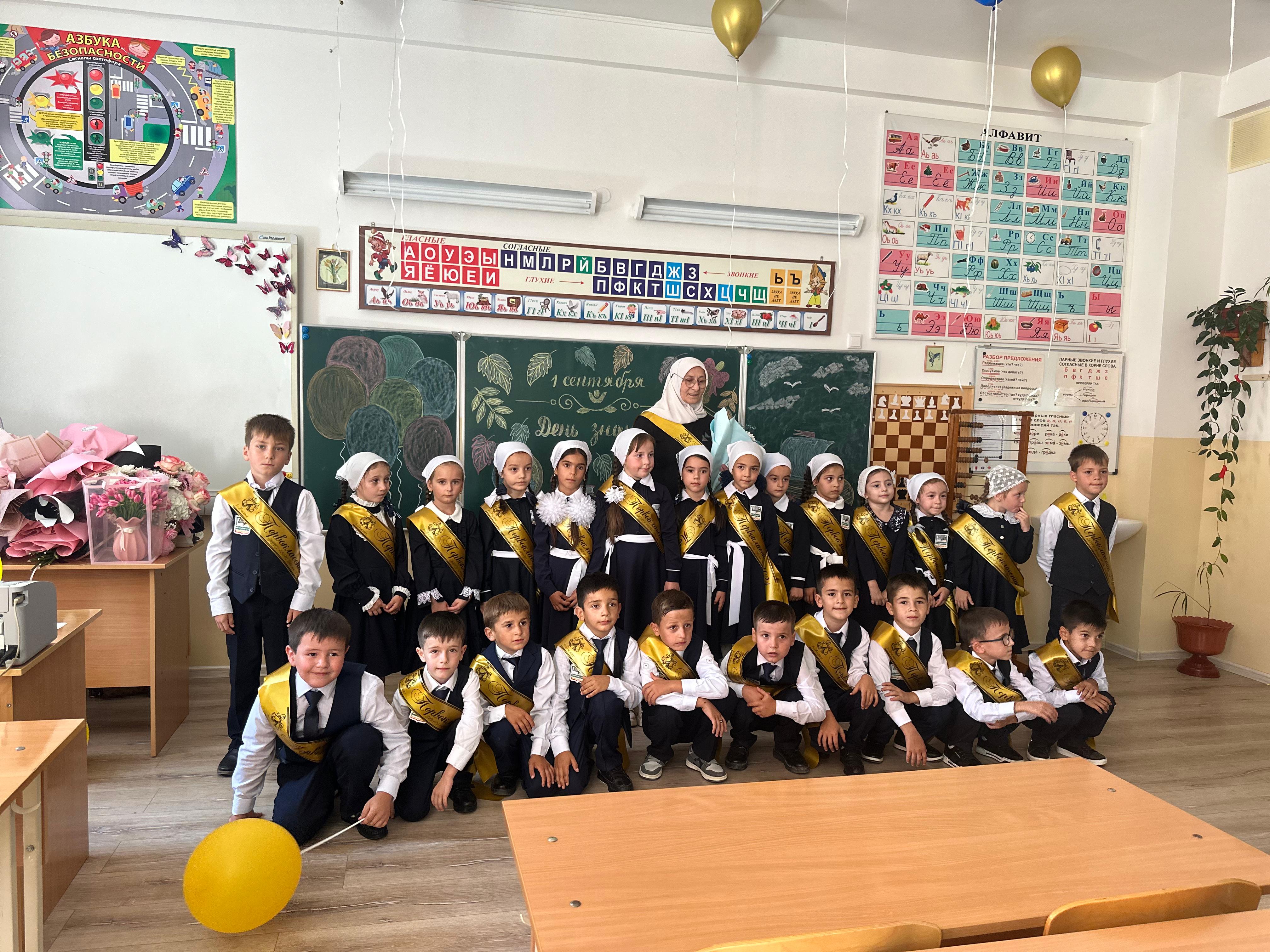 С целью духовно-нравственное и гражданско-патриотическое воспитание в МБОУ « СОШ No1им.З.С. Абдулаева с.Катар-Юрт» была проведена торжественная линейка первого звонка «Здравствуй школа!». Так же все классные руководители провели классный час на тему “Образбудущего. Ко Дню знаний”