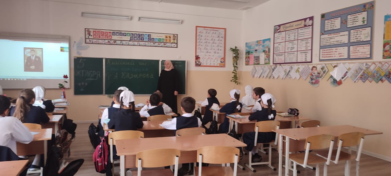 04.10.2024С целью потриотического воспитания обучающихся на примере героя России Р.А. Кадырова в школе провели классные часы, посвещенные Дню рождения Главы ЧР , Героя России Р.А. Кадырова.