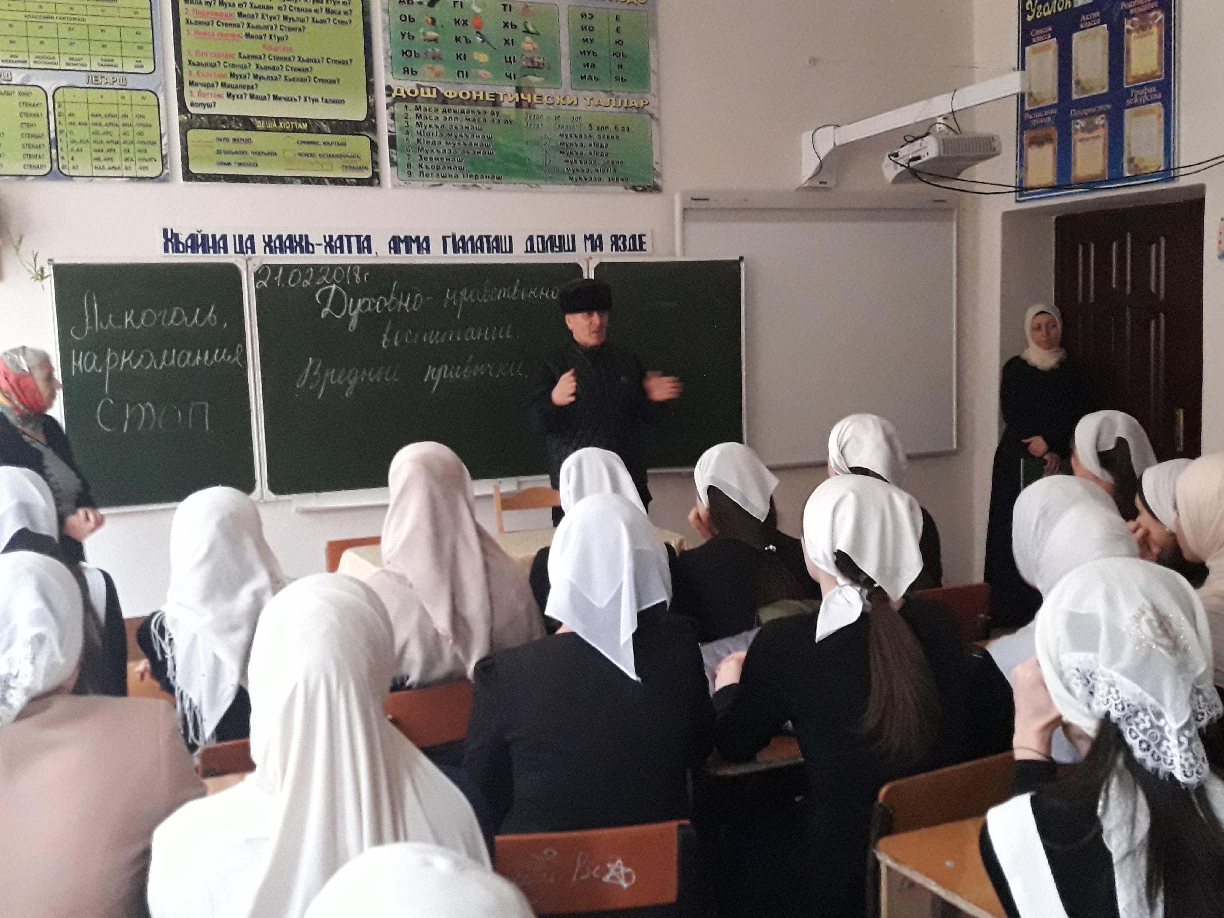 21.02.201821 февраля состоялась встреча учащихся 9-11 классов с зам.имама села Катар-Юрт Шахбиевым Алхой. Целью этой встречи было повышение уровня информированности подростков по проблемам, связанных с наркотиками; выработать и развить навыки, предотвращающие употребление психоактивных веществ.