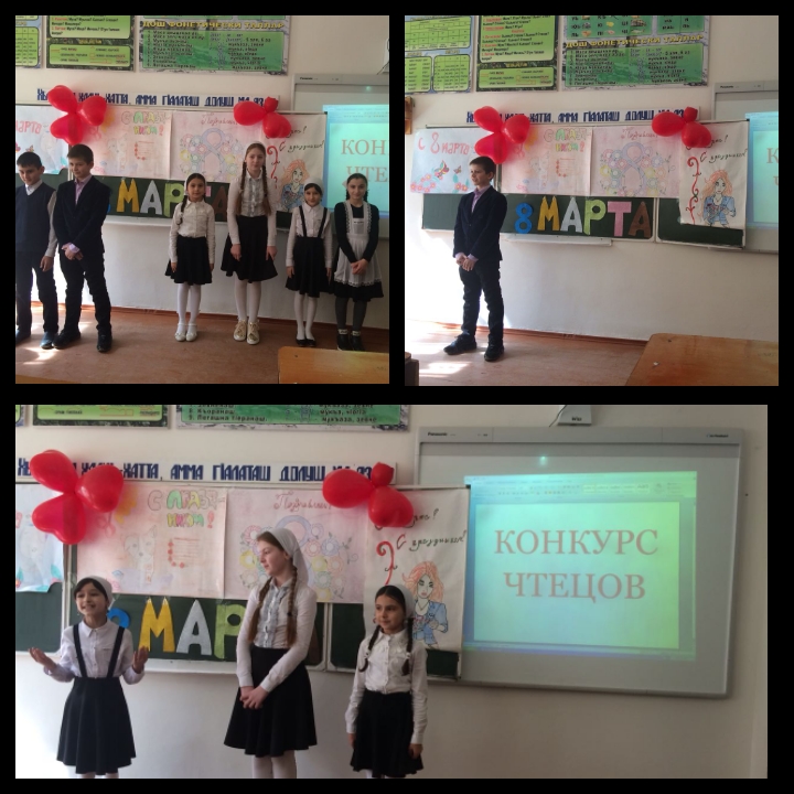 08.03.2018В преддверии первого весеннего праздника Международного женского дня 8 марта в МБОУ "СОШ №1 с.Катар-Юрт им.З.С.Абдулаева"состоялся конкурс чтецов. Учащимся было предложено подготовить для выразительного чтения стихи о матери, женщине. В итоге в конкурсе приняло участие 45 учащихся. В этот день в МБОУ "СОШ №1 с.Катар-Юрт им.З.С.Абдулаева" прозвучало много замечательных стихотворений, в каждом из которых ребята по-своему выражали свои чувства к самому главному человеку в своей жизни – Маме.